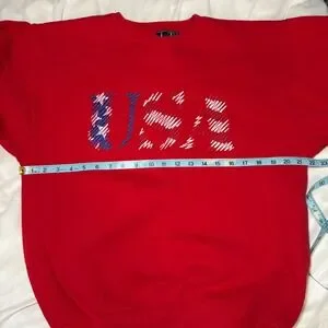 Keywords: Galt Sand, sweatshirt, crewneck, USA, embroidered, red, patriotic, casual, comfortable, American, graphic, fall, winter