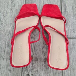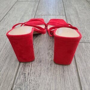The Drop Avery Women's Red Suede Strappy Square-Toe Heeled Sandals Size 10