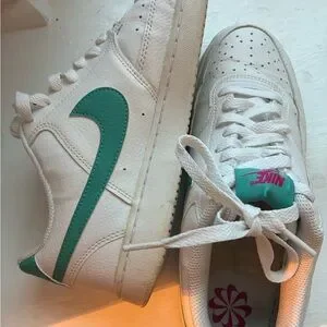 Nike Court Vision Low White Teal Swoosh Sneakers Women’s 9.5