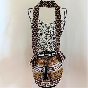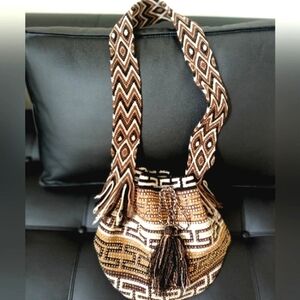 NEW Wayuu Handmade Woven Crossbody Bucket Bag Rhinestones Wide Strap Drawstring