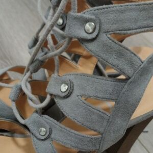 Step out in style with these chic balta gray strappy box heels. Size 11.