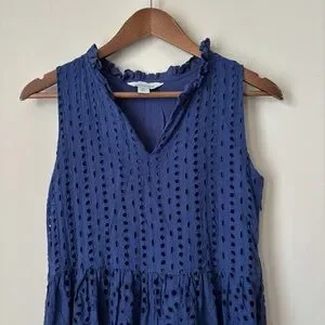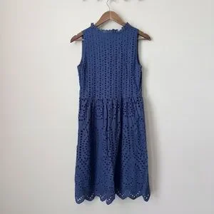 Sundance Promise Eyelet Ruffle Dress Small Blue