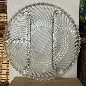 Enhance your dining experience with this elegant clear glass divided serving platter. Perfect for serving a variety of dishes with style.