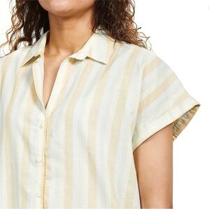 • Fit: Relaxed fit with a button-up front and cuffed short sleeves
