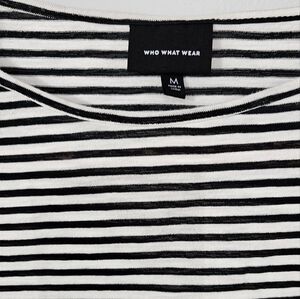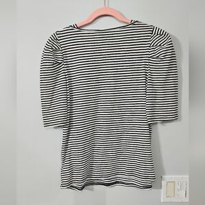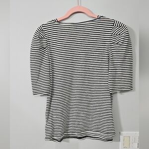 Who What Wear Black and White Puff Fitted 3/4 Sleeve T-Shirt
