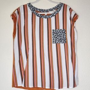 Anthropologie Porridge Orange Stripe Cap Sleeve Blouse L