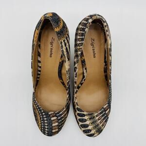 ZIGI Soho Women's Multicolor Peacock Design Slip On Wedge Pump Heels Size 7