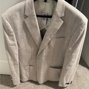 EXPRESS $278 Cream PLAID EXTRA SLIM LINEN BLEND SUIT JACKET SZ 44R