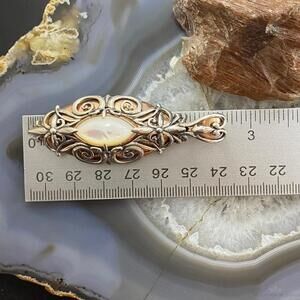 Romantic and Magical Carolyn Pollack Vintage Southwestern Style Sterling Silver and Brass Marquise White Mother of Pearl Cabochon Decorated Enhancer Pendant For Women.