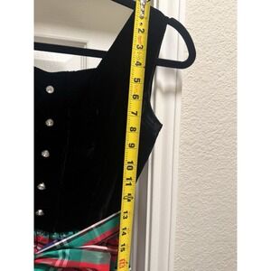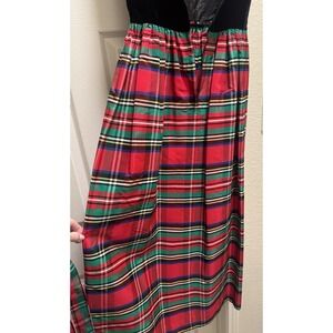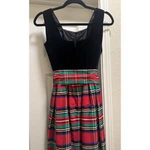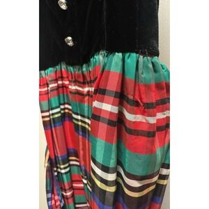 Holiday Party Dress Velvet Taffeta Tartan Plaid Teena Paige Vtg Xmas Jr Sz 7
