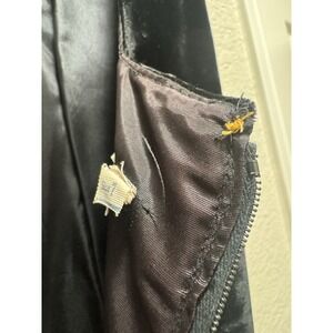 Vintage dress In good shape! . Zipper hook and eye connection has been repaired, buttons and seams all intact. 2 small pulls on either side of where belt would sit, possibly from where belt loops were on dress? Won't show with belt on. A classic beauty! Top is velvet, bottom is a taffeta or polyester..?