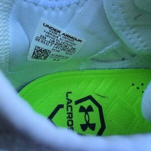 Dynamic lacrosse shoes with vibrant neon green interior. Perfect for performance.