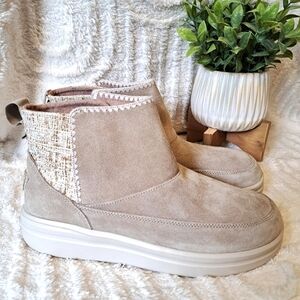Hey Dude Mel Boots Suede Leather Platform Sand Beige Slip On Ankle Booties Sz 11
