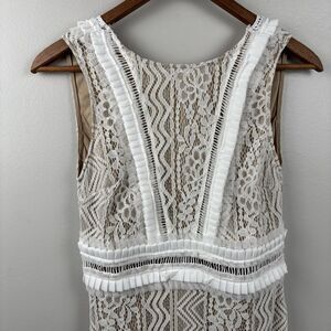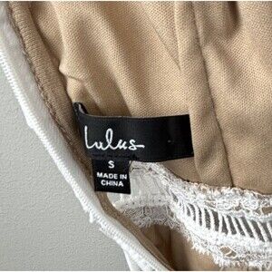 This stunning Lulus dress is perfect for any occasion, whether it's a formal wedding, a baby shower , baptism, bridal shower, or a casual party. The dress features a solid pattern and a sleeveless design, with a round neckline and a zip closure. It is made of a combination of very soft nylon and cotton materials, and is lined for added comfort.