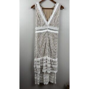 Lulus Dress Off White Floral Lace Sz S Maxi Long Tiered Ruffle Wedding Formal