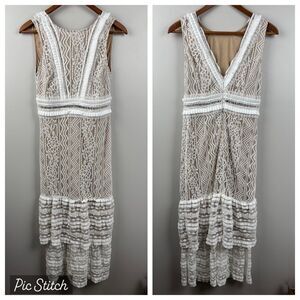 Lulus Dress Off White Floral Lace SMALL Maxi Long Tiered Ruffle Wedding Formal