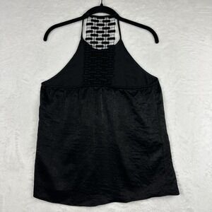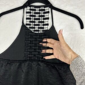 Waverly Grey Women Black Halter Sleeveless Blouse S Lace Back Textured