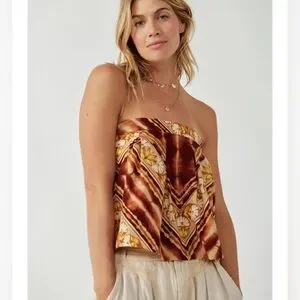 FREE PEOPLE Kendra Printed Tube Top Strapless Brown Neutrals Sz Large
