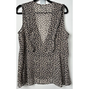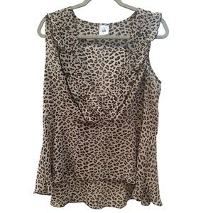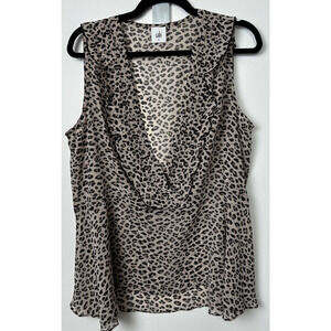 CAbi Leopard Print Sleeveless V Neck Blouse Fall Ruffles Business Layer Lg