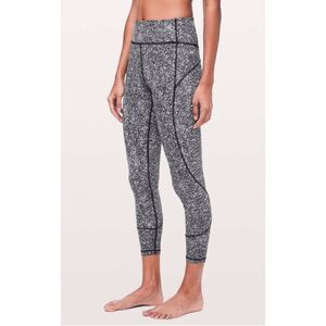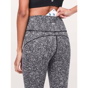 In Movement Everlux Tight 25” in Diffuse Starlight Black from Lululemon. Cool on skin Everlux fabric. Sweat wicking and quick drying. Four way stretch. Lightweight and breathable. Hidden back waistband pocket. High rise. Size 6. See photos for measurements. Like new condition.