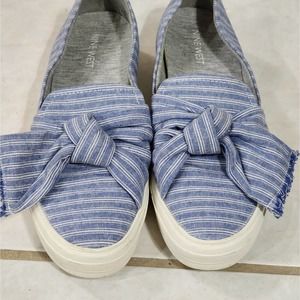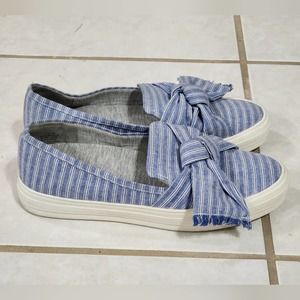 Nine West blue and white striped bow detail sneakers size 7.5