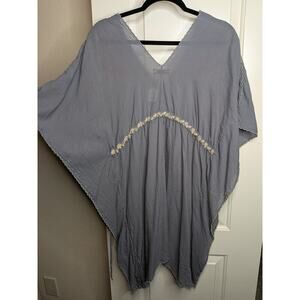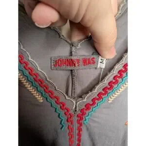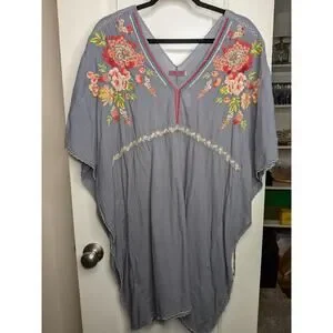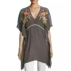 Johnny Was Cherise V-Neck Embroidered Poncho Tunic Grey & Pink Size Medium