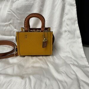 Stylish yellow and brown crossbody bag perfect for any occasion. Features a sleek design with a comfortable strap.