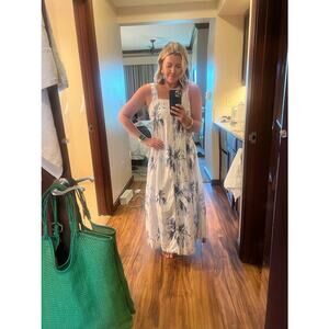 BOSS Blue Floral 100% Linen Open-Waist Square Neckline Summer Dress Size US 4