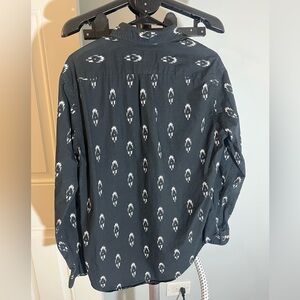 Elegant black shirt with white accents. Ideal for versatile wear.