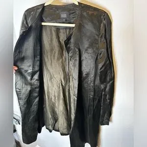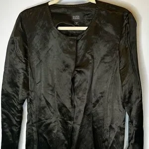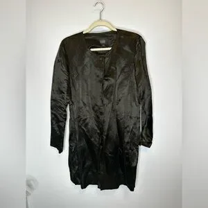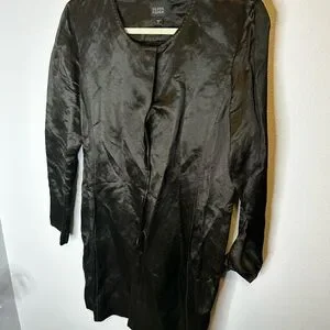 Eileen Fisher Olive Green Silk Linen Long Sleeves Duster dark green medium