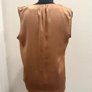 Chic tan sleeveless blouse. Perfect for versatile styling. 100% Polyester. Great condition, no visible flaws