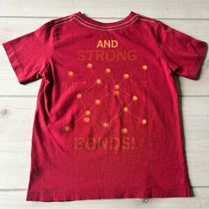 This vibrant red graphic t-shirt from Peek is perfect for kids who love fun and style. Featuring a playful science design on front and back of shirt, it's a great addition to any wardrobe. Size XS (2/3) on tag. 100% cotton.