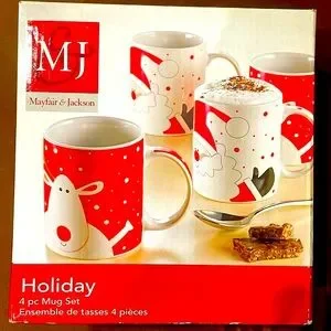 Festive holiday cheer in a cup! Mayfair & Jackson 4-piece mug set: