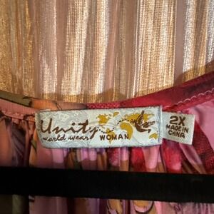 Unity World Wear Woman Plus 2X Floral Tunic Top Beaded Neckline Boho Festival