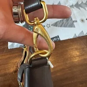 Elegant brown leather shoulder bag with gold accents. Perfect for any occasion. ID still had the plastic on it. It was a gift and I think it’s an inspired by bag. The zipper is a little wavy and it’s just not my style.