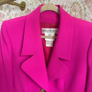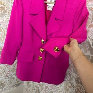 Vintage Yves Saint Laurent Hot Pink Blazer With Gold Heart Buttons