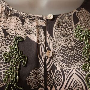 Odd Molly is celebrated for whimsical, feminine designs that combine vibrant prints with luxurious fabrics. This silk mini dress features an intricate butterfly print, delicate beading, a keyhole neckline, and a smocked back panel, offering a playful yet refined silhouette. Its flowing fabric and detailed craftsmanship make it versatile for both casual gatherings and evening occasions. Sized 4 with brand-specific vanity sizing, it fits approximately like a large, providing a flattering, comfortable shape. With standout detailing and a vibrant design, this piece is an eye-catching addition for effortless style.