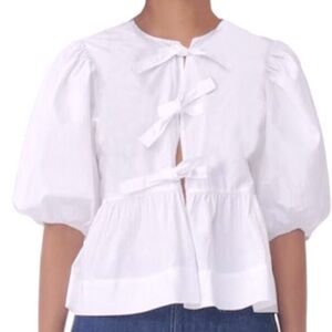 NWT White Puff Sleeve Peplum Top Sz M Women