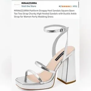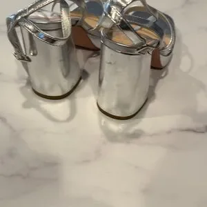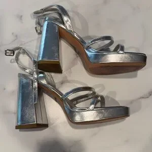 Silver Strappy Women's platform Heels size 8 party wedding 4 inch heel