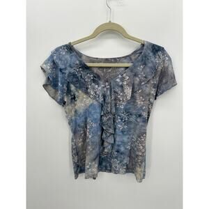 Unbranded Boho Fairy Top Size M Blue Floral Tie Dye Ruffle Y2K T-Shirt