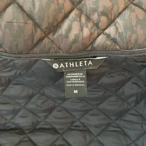Athleta Black and Brown Quilted Puffer Jacket