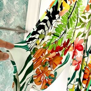 Brighten your look with this Karen Kane blouse, which features a bold floral pattern. Perfect for any occasion. Its design with pleats offers a generous fit and a cool flowing style.