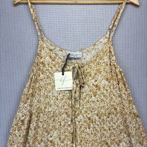 Dress Forum LA S Floral Print Maxi Dress Tiered Yellow Spaghetti Straps Boho NWT
