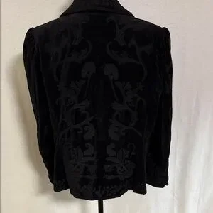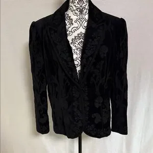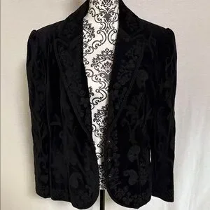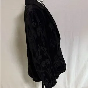 Vintage Nygard Collection Black Velvet Embroidered Cotton Women's Blazer Size 16