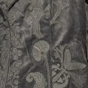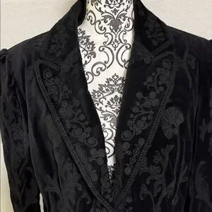 Discover timeless elegance with this chic black blazer, adorned with exquisite embroidery. Ideal for both office and evening wear. Dry Clean. Suede Look Goth Retro