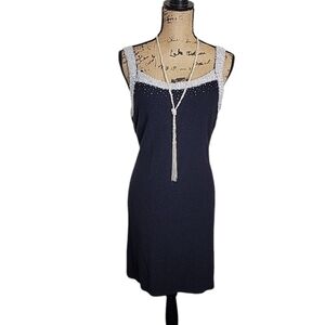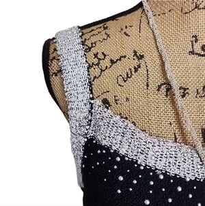 ST. JOHN Collection Women's Wool Blend Black Metallic Pearls Shimmer Dress.