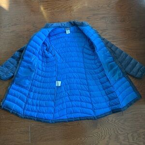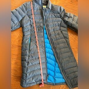 Elegant navy puffer coat by Patagonia. Ideal for cold weather.