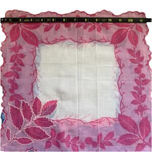 Vintage Handkerchief, Vintage Hanky, Floral Leaf Print, Embroidered Cotton, Mid Century Linens, Cottagecore, Shabby Chic, Retro Textile, Collectible Hanky, Botanical Print, Baby Shower, Bridal, Feminine, Gifting, Holidays, Tea Party, Garden Party, Handbag Accessory