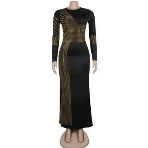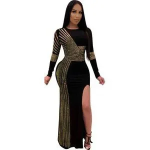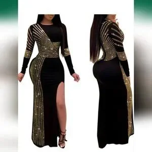Black and Gold Floor Length Evening Dress XL
