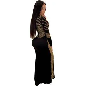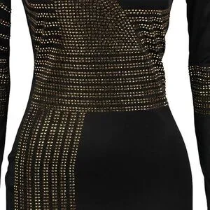 Soft/ Stretchy/ Well made/ Rhinestone embellished/ Back zip/ Deep side seam split